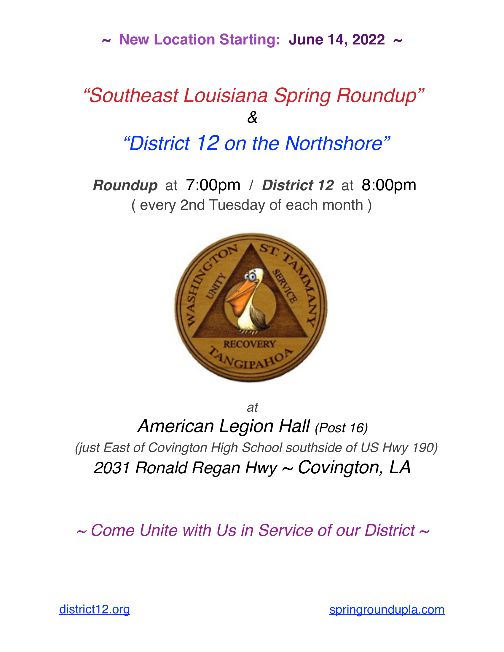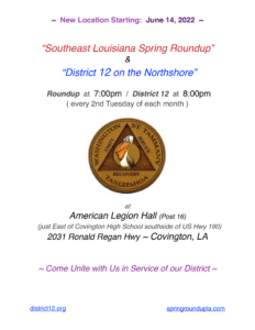 District 12 Meets 8pm 2nd Tuesdays Monthly