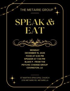Join us for speaker Blake P. (Psychic Change Group – Covington)