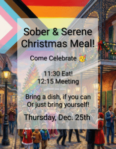 Thurs., December 25, 2025, 11:30am food, 12:15pm meeting